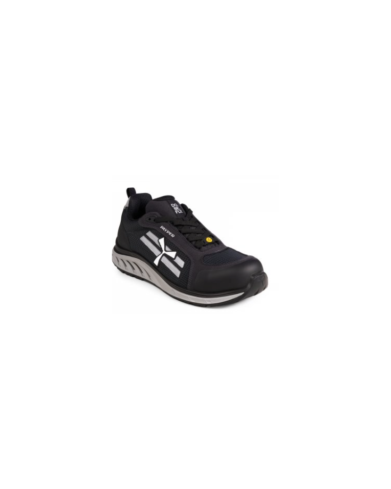 Chaussures de sécurité, avec tige en tissu mesh à trame ouverte, ultra-respirant. Doublure intérieure respirante et résistante à l'abrasion. Contrefort en TPU de renforcement et protection anti-abrasion sur la pointe. Embout en fibre de verre, plus léger et plus résistant. Plaque anti-perforation ultra-légère. Orthèse plantaire amovible Pulsar Cushioning en PU double densité et système à cellules ouvertes, ergonomique, antistatique et amortissante. Première de montage réalisée avec un mélange en PU double densité ultra-léger. La première de montage offre amorti et confort durable, tandis que l'orthèse plantaire assure stabilité et soutien. Bande de roulement en TPU ultra résistante à l'hydrolyse et à l'usure. Chaussure de sécurité ESD.