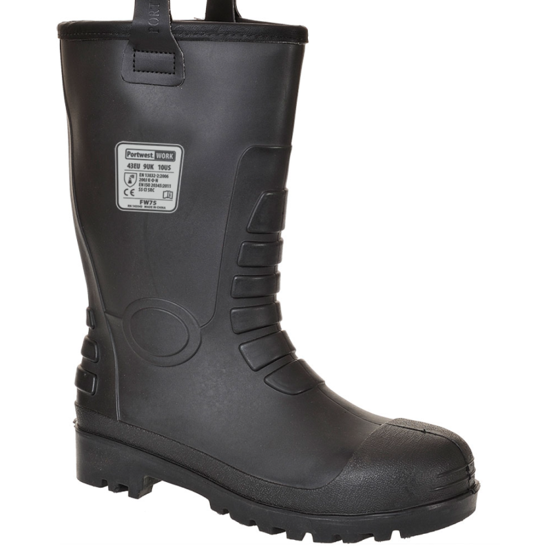 Une alternative imperméable au cuir traditionnel. embout et semelle intercalaire acier, entièrement imperméable, fourrure bordée de languettes latérales pour un enfilage facile.