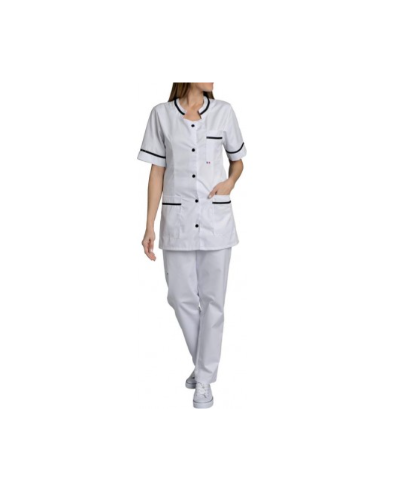Cette tunique médicale fabriquée en France dans les Hauts-de-France est pensée pour les professionnelles de la santé et de l’entretien. Alliant confort, résistance et praticité, elle se distingue par ses pressions colorées et sa coupe ergonomique.