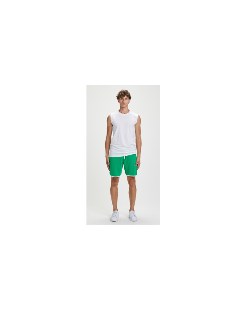 Bermuda homme en sweat avec élastique et cordon coulissé à la taille, zip avec patte, deux poches sur le devant et liseré de finition en contraste.